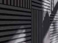 Akustikpaneele dienen der Gestaltung von Wänden und Decken. Zusätzlich stehen die akustischen Eigenschaften der Produkte im Vordergrund. Die Paneele haben eine schwarze Trägerplatte aus recyceltem, schallabsorbierenden Polyester, auf denen Lamellen (MDF) angebracht sind, die mit astfreier Eiche furniert sind.