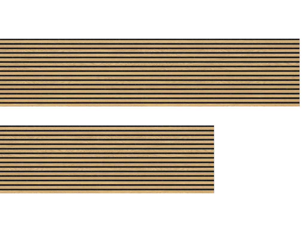 Die Akustikpaneele dienen der Gestaltung von Wänden und Decken. Zusätzlich stehen die akustischen Eigenschaften der Produkte im Vordergrund. Die Paneele haben eine schwarze Trägerplatte aus recyceltem, schallabsorbierenden Polyester, auf denen Lamellen (MDF) angebracht sind, die mit astfreier Eiche furniert sind – das Holz für Lamellen und Furnier stammt ausschließlich aus vorbildlich bewirtschafteter Forstwirtschaft.