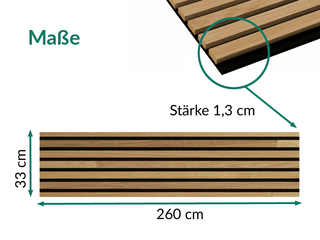 Bei den Lamellen handelt es sich um hochwertige Massivholzlamellen, die dank der Mattlackierung eine einfache Reinigung und Pflege der Paneele ermöglichen. Auch die Montage der Akustikpaneele ist relativ unkompliziert: Du kannst sie entweder kleben oder anschrauben.