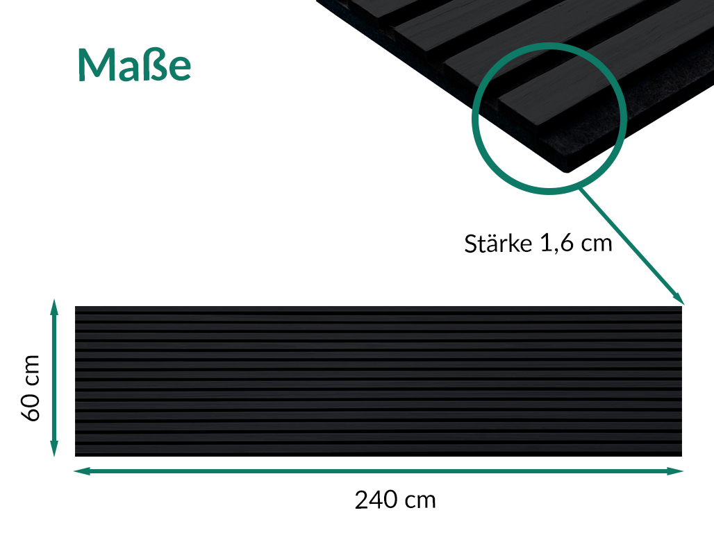 | Lieferumfang: | 1 x Akustikpaneele 240 x 60 cm (entspricht 1,44 qm) |