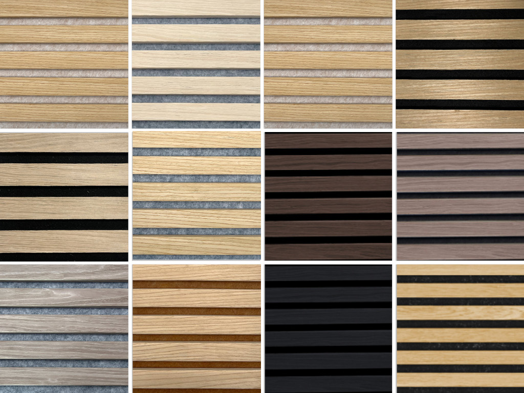 Die Paneele bestehen aus einer einseitig furnierten Trägerplatte aus schwarzem Filz, auf der 6 mm starke Filz-Lamellen angebracht sind. Diese besondere Struktur ermöglicht eine optimale akustische Regulierung und Nachhalldämpfung.