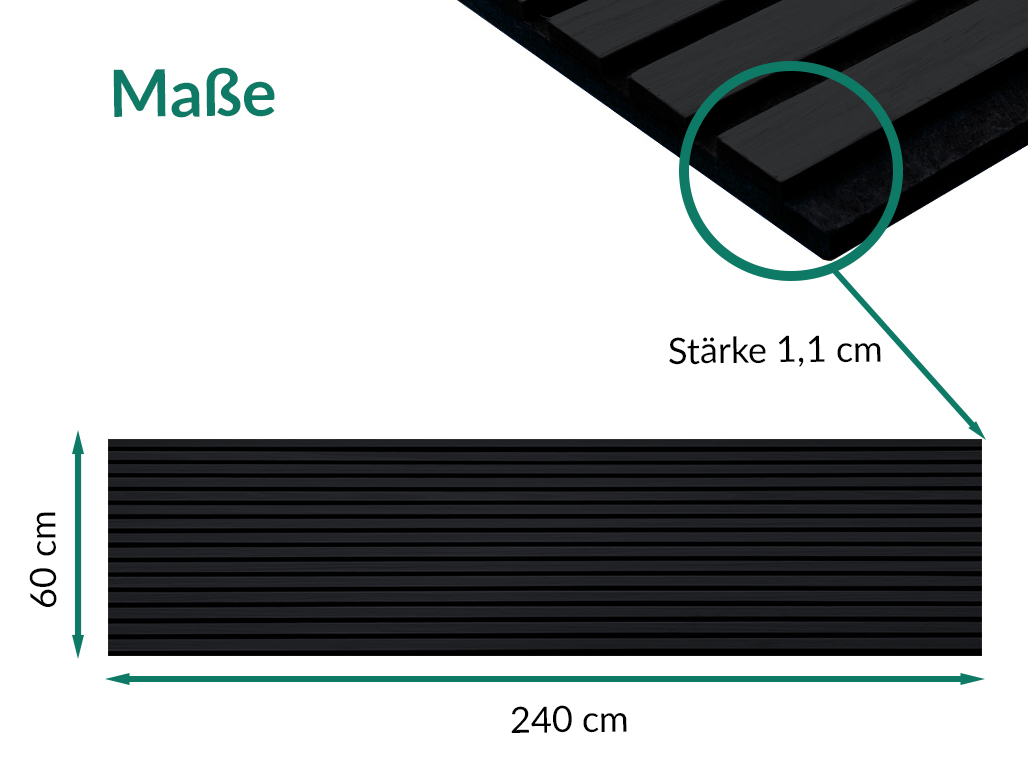 Lieferumfang: | 2 x Akustikpaneele 240 x 60 cm (entspricht 2,88 m²) |