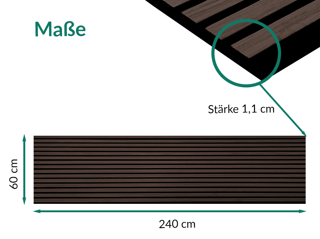 Lieferumfang: | 2 x Akustikpaneele 240 x 60 cm (entspricht 2,88 m²) |