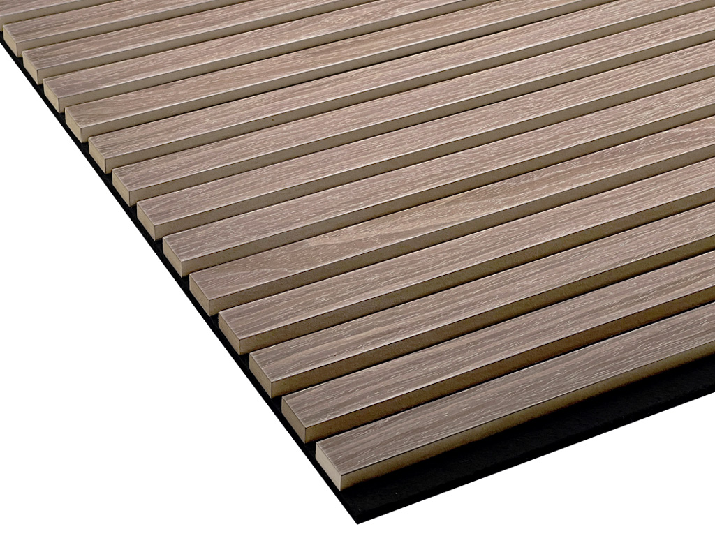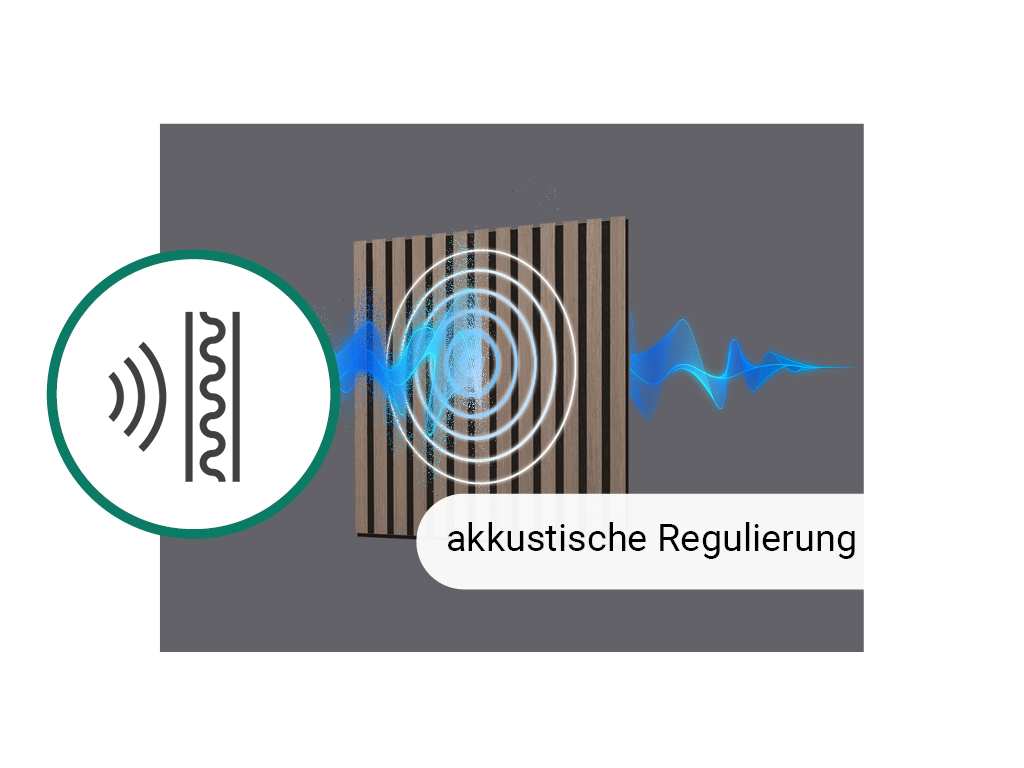 Die Paneele bestehen aus einer Trägerplatte, auf der Lamellen aus Holz angebracht sind. Diese besondere Struktur ermöglicht eine optimale akustische Regulierung und Nachhalldämpfung.