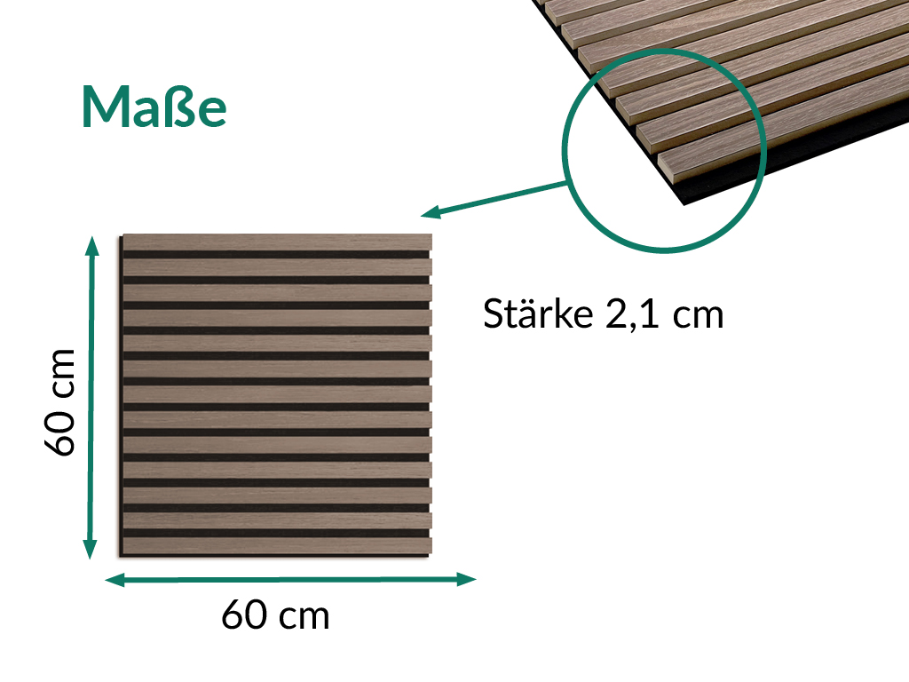 | Lieferumfang: | 4 x Akustik-Wandpaneele 60 x 60 cm (entspricht 1,44 m²) |