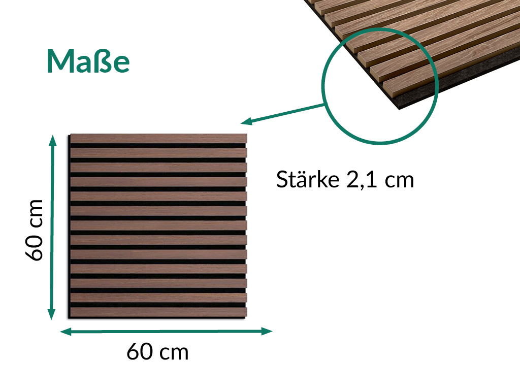 | Lieferumfang: | 4 x Akustik-Wandpaneele 60 x 60 cm (entspricht 1,44 m²) |