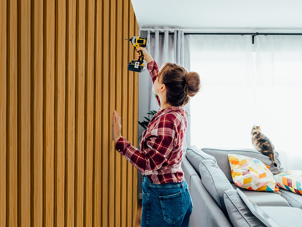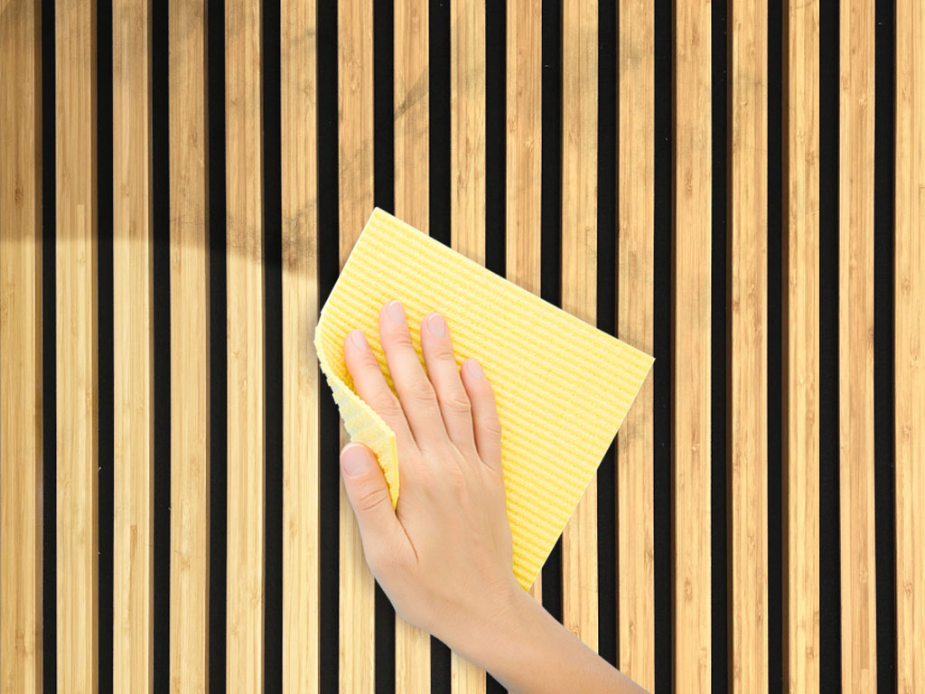 Akustikpaneele kannst du für die Gestaltung deiner Wände oder Raumdecken verwenden, im Vordergrund steht aber die Funktion der Schalldämmung. Die Paneele aus Bambus reduzieren Nachhall und sorgen für eine bessere Raumakustik. Die Paneele haben eine Trägerplatte aus Polyethylenterephthalat (PET) und braune, geölte Lamellen aus Bambus. Die Akustikpaneele sind nicht für Feuchträume geeignet und sollten daher weder in Küche noch Badezimmer angebracht werden.