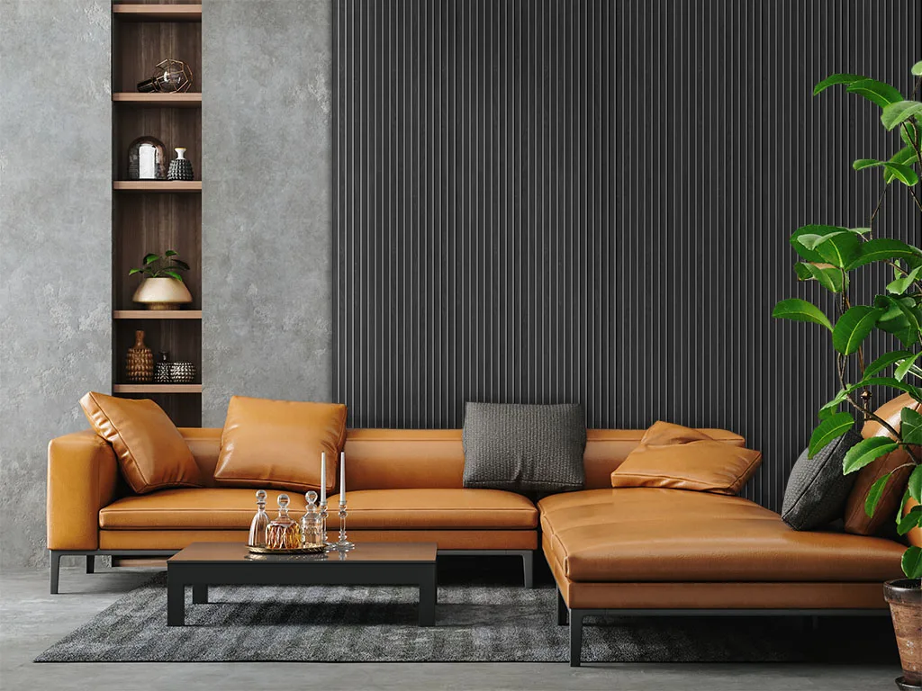 Akustikpaneele dienen der Gestaltung von Wänden und Decken. Zusätzlich stehen die akustischen Eigenschaften der Produkte im Vordergrund. Die Paneele haben eine graue Trägerplatte aus recyceltem, schallabsorbierenden Polyester, auf denen Lamellen (MDF) angebracht sind, die mit astfreier Eiche furniert sind.