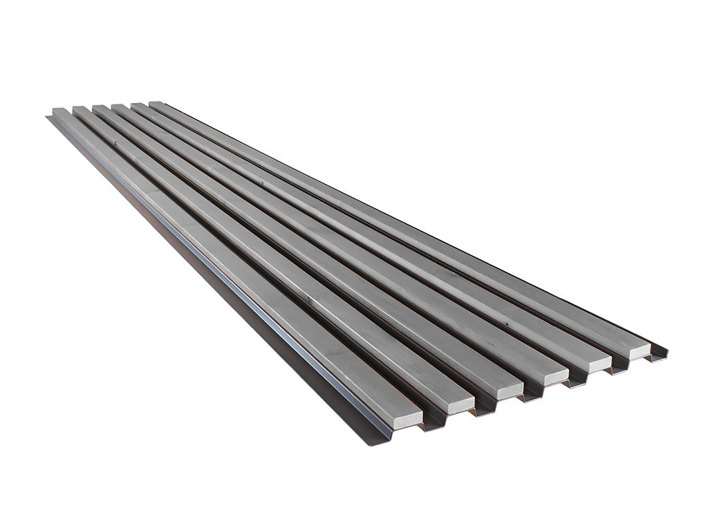 15 mm starker Aluträger, 240 x 45 cm, Lamellen aus thermobehandeltem Echtholz