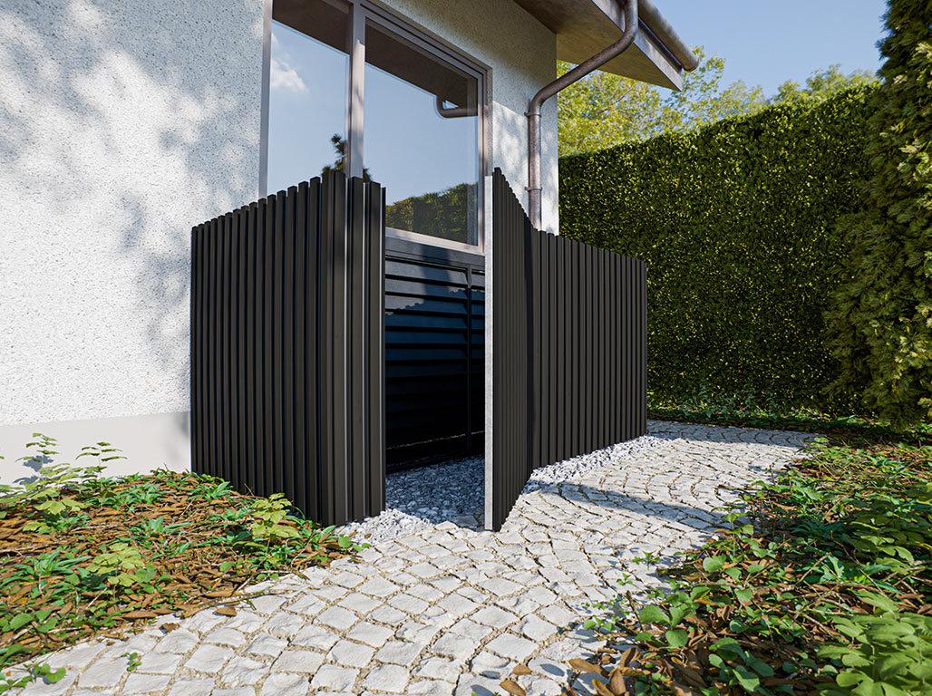 Diese hochwertigen AluHolz-Paneele bestehen aus recycelbaren Materialien und überzeugen mit einer langen Lebensdauer. Die Trägerplatte ist aus robustem Aluminium gefertigt und sorgt für Stabilität. Die Lamellen bestehen aus thermobehandeltem und schwarz lackiertem Kiefernholz, was nicht nur eine ansprechende Optik, sondern auch eine erhöhte Widerstandsfähigkeit gegen Wind und Wetter gewährleistet. Die Montage erfolgt einfach und sicher mittels Schrauben.