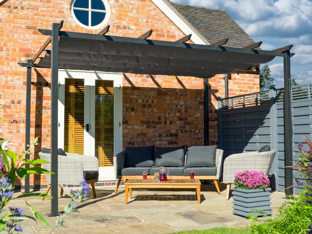Die offene Pergola ist aus Aluminium gefertigt. Die Oberfläche ist pulverbeschichtet, was für extreme Widerstandsfähigkeit und eine lange Lebensdauer sorgt. Gleichzeitig schützt die Beschichtung vor Stößen, Kratzern, UV-Strahlung und Witterungsbedingungen. So kannst du deine Pergola zu jeder Jahreszeit nutzen – unabhängig vom Wetter.