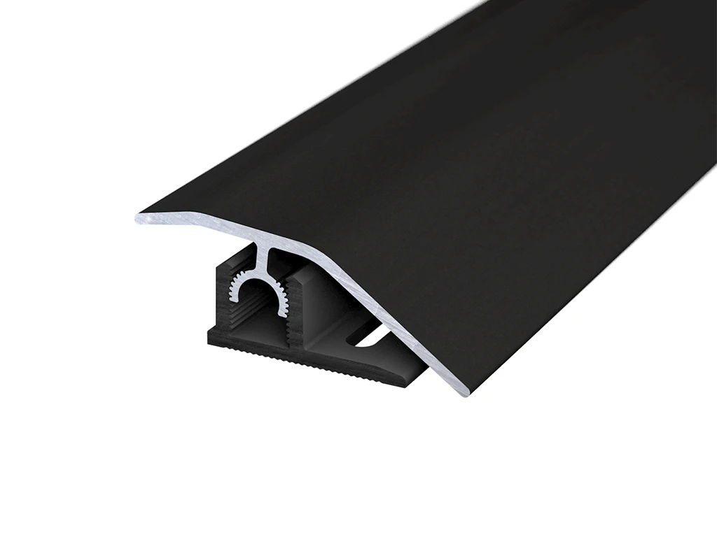 Verdeckt befestigt bieten Profi-Tec Profile eine perfekte Optik ohne Schraublöcher. Die Montage ist besonders schnell und einfach. Mit dem bogenverzahnten Gelenksteg rastet das Oberprofil im Basisprofil ein und passt sich automatisch dem Bodenbelag an - variabel in Höhe und Neigung. Auch bei starken Niveauunterschieden liegt das Profil an beiden Seiten dicht an. Gleichzeitig erlaubt die Bogenverzahnung die problemlose Demontage. Das Oberprofil kann bei Bedarf gelöst und anschließend wieder im Basisprofil verankert werden.