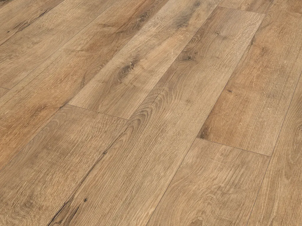 Die typische Eichenholzmaserung des Dekors strahlt zeitlose Klasse und behagliche Wärme aus. Landhausdielen sind perfekt für alle, die den authentischen Holzcharakter ihres Bodens hervorheben möchten – für ein rustikales Flair. Die an vier Seiten umlaufende Fase hebt den Dielencharakter besonders hervor.