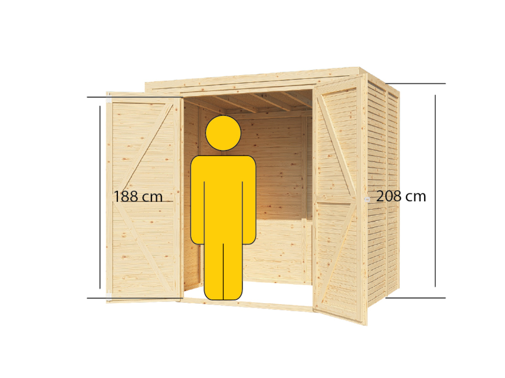 B x T x H: 208 x 157 x 208 cm, Durchgangshöhe Tür: 187 cm