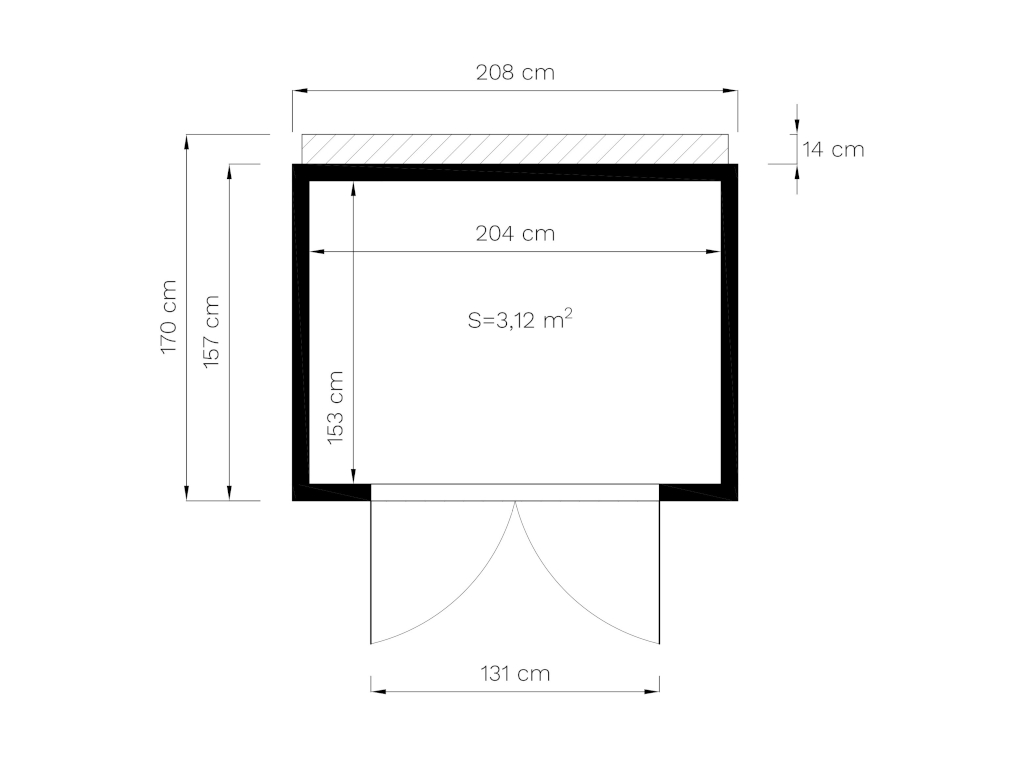| Innenmaß Haus / größter Raum (B x T cm): | 204 x 153 cm |