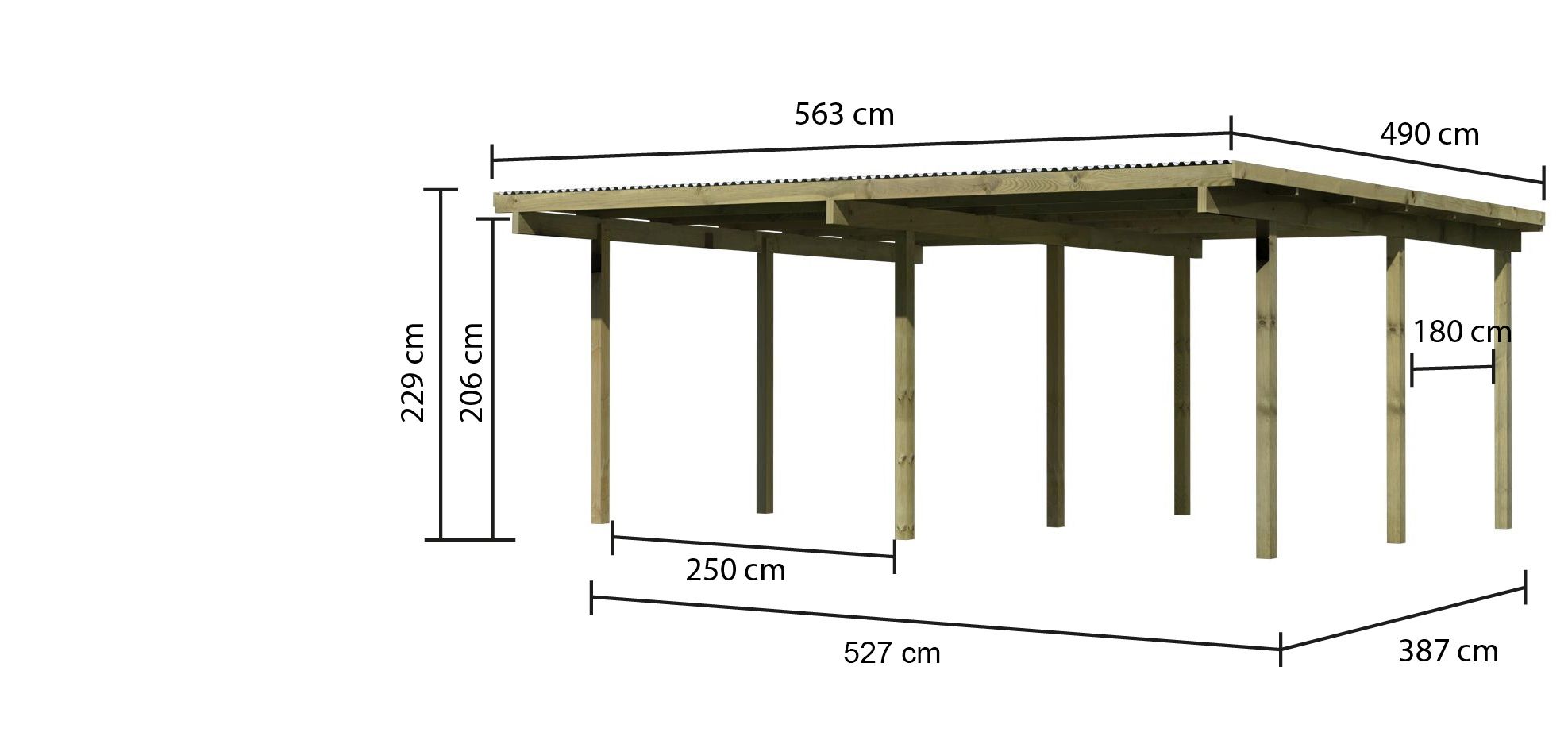 B x T x H: 563 x 490 x 229 cm, Flachdach, Massivholz kdi
