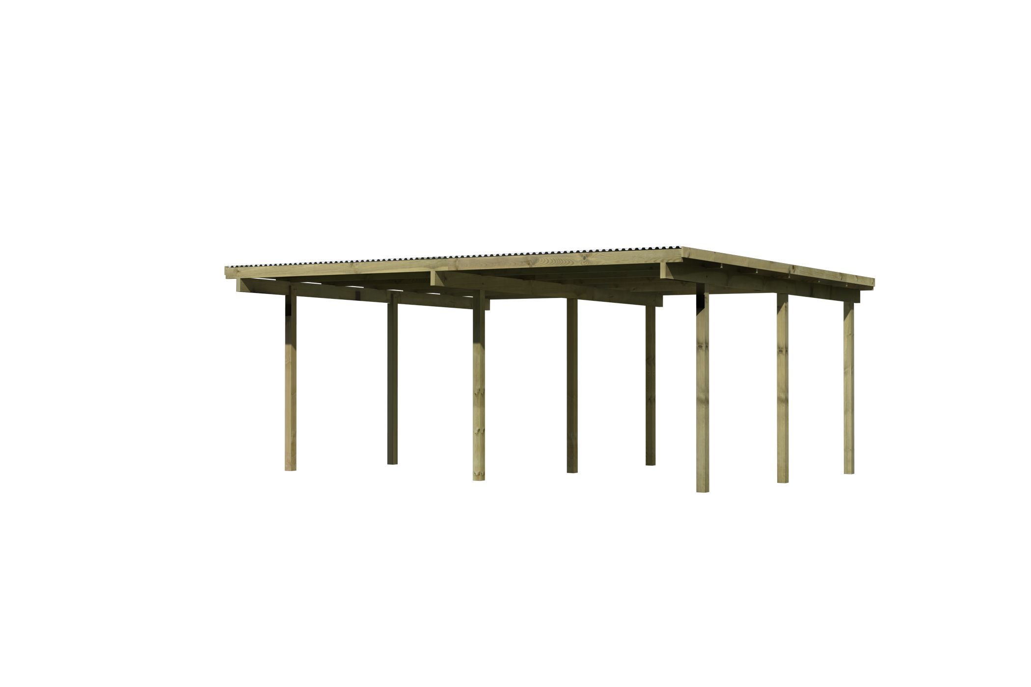 Die 9 x 9 cm starken Pfosten des Carports sind aus chromfreiem, kesseldruckimprägniertem Massivholz und sind somit besonders witterungsbeständig. Dank der praktischen Systembauweise wird zudem ein einfacher und schneller Aufbau ermöglicht. - Starke Dacheindeckung