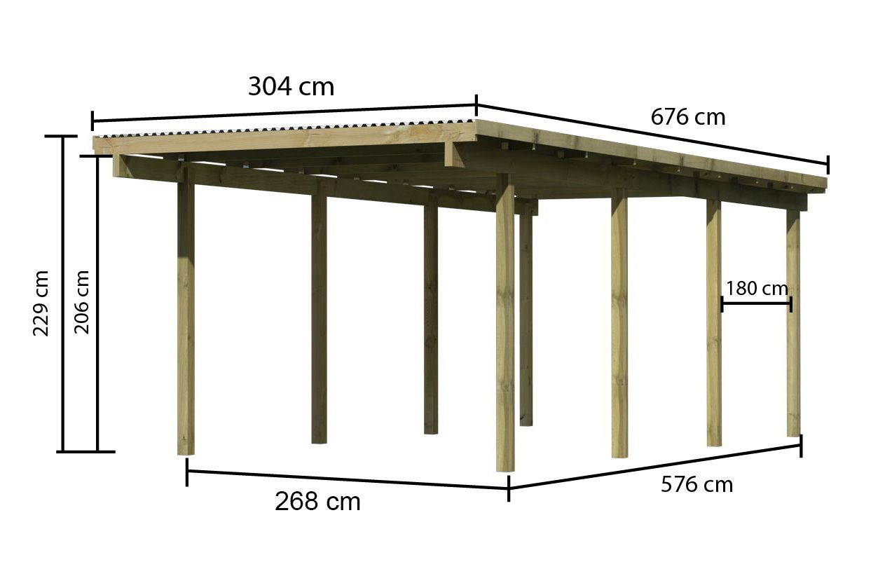 Holz-Doppelcarport EcoShield 595 x 495 cm, Fichte Holz-Doppelcarport EcoShield 595 x 495 cm, Fichte
