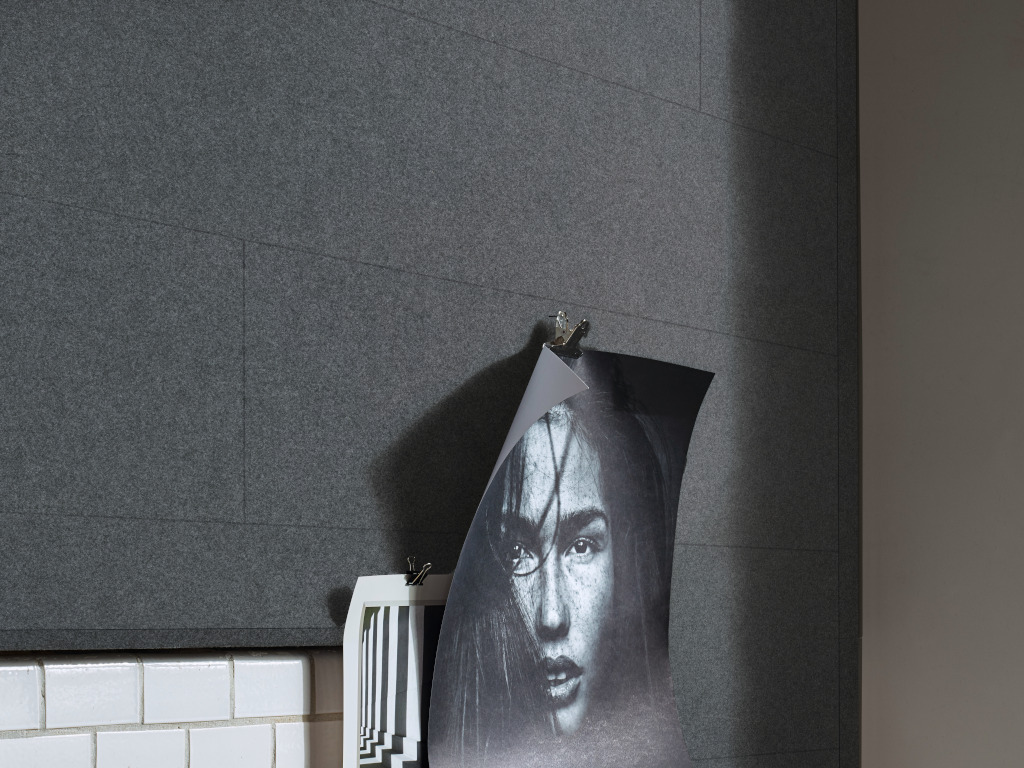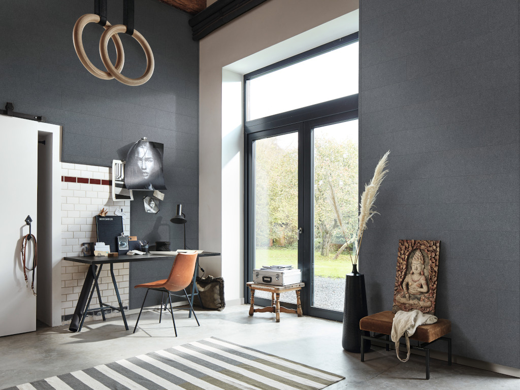 MEISTER-Paneele craft SP 700 setzen neue Akzente in der Wandgestaltung. Die Paneele sind wahlweise mit glatter oder geprägter Filzoberfläche in den Trendfarben Basaltgrau und Schiefergrau erhältlich. Besonders die geprägte Struktur verleiht dem Filz eine lebendige Optik und Haptik, die an Holz erinnert – so entstehen spannende visuelle Effekte für jedes Interieur. Bitte beachten: Aufgrund des Holzträgers sind die Paneele nicht für Feuchträume geeignet.