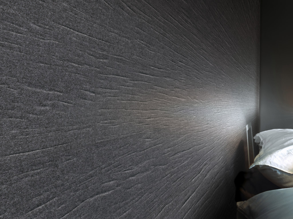 MEISTER-Paneele craft SP 700 setzen neue Akzente in der Wandgestaltung. Die Paneele sind wahlweise mit glatter oder geprägter Filzoberfläche in den Trendfarben Basaltgrau und Schiefergrau erhältlich. Besonders die geprägte Struktur verleiht dem Filz eine lebendige Optik und Haptik, die an Holz erinnert – so entstehen spannende visuelle Effekte für jedes Interieur. Bitte beachten: Aufgrund des Holzträgers sind die Paneele nicht für Feuchträume geeignet.