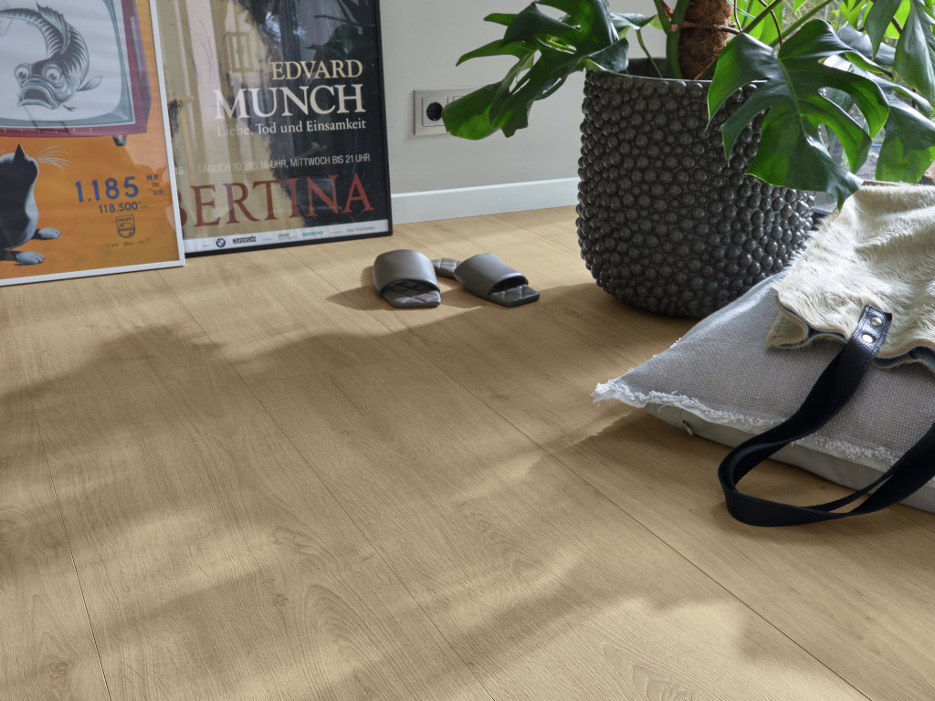 Dieser Designboden ist 8 mm stark. Schwimmende Verlegung ohne Kleber? Die clevere Klickverbindung Maxiclic machts möglich.
