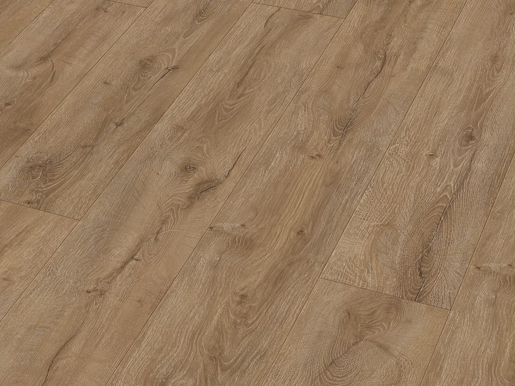 Das Dekor mit typischer Eichenholzmaserung charakterisiert perfekt den Stil der rustikalen Moderne. Das klassische 1-Stab-Landhausdielen-Format verleiht jedem Raum ein harmonisches Ambiente, das dein Zuhause besonders natürlich erscheinen lässt. Die an vier Seiten umlaufende Fase hebt den Dielencharakter besonders hervor.