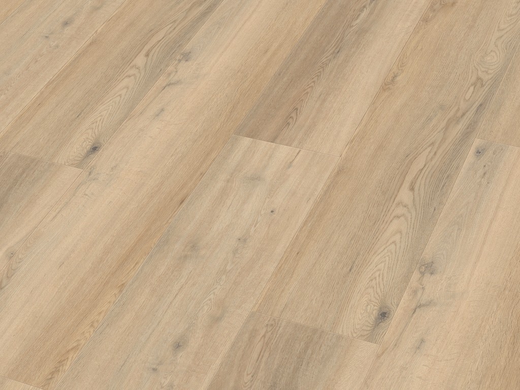 Das Dekor mit typischer Eichenholzmaserung charakterisiert perfekt den Stil der rustikalen Moderne. Der Landhausdielenlook bringt mit seinem natürlich wirkenden 1-Stab-Design südliches Flair in dein Zuhause und schafft eine Atmosphäre voller Ruhe und Gemütlichkeit. Die 4-seitig umlaufende V-Fuge der Diele betont den rustikalen Charakter. Dank modernster Prägetechnologien ist die strukturierte Oberfläche bis ins kleinste Detail der Beschaffenheit von Holz nachempfunden.