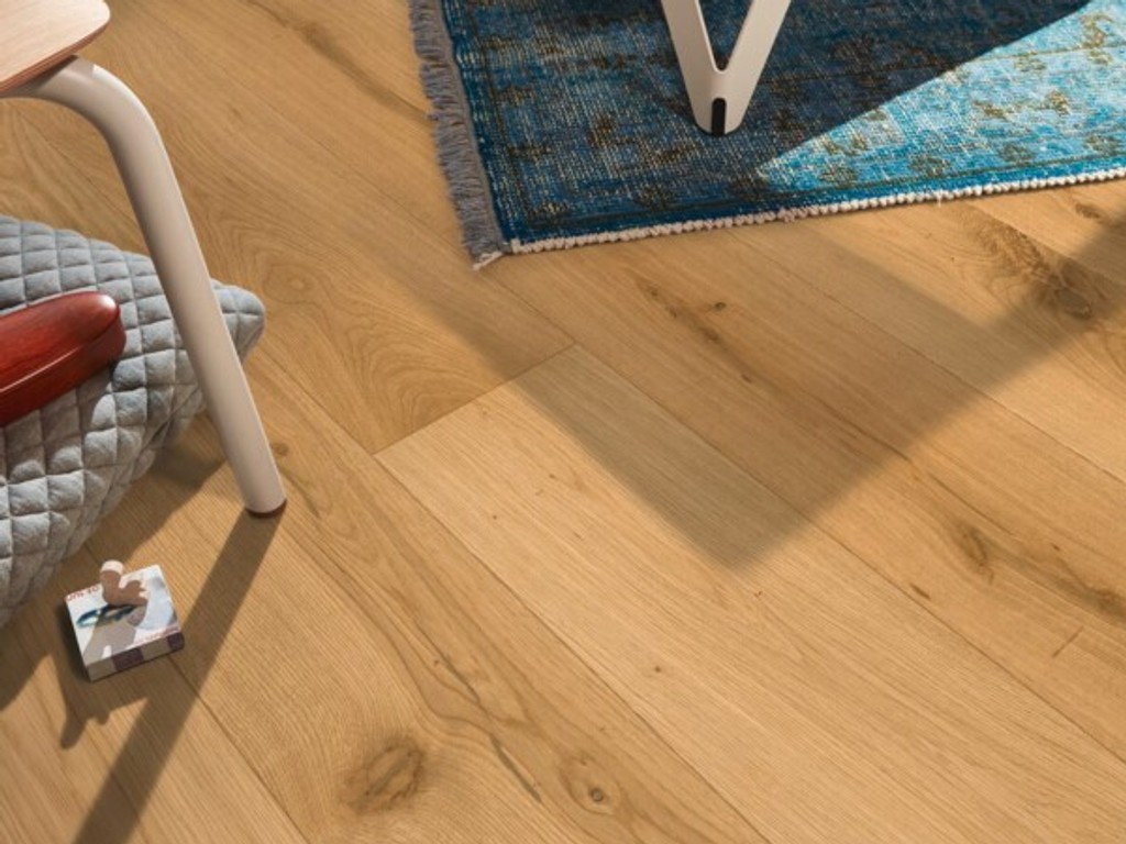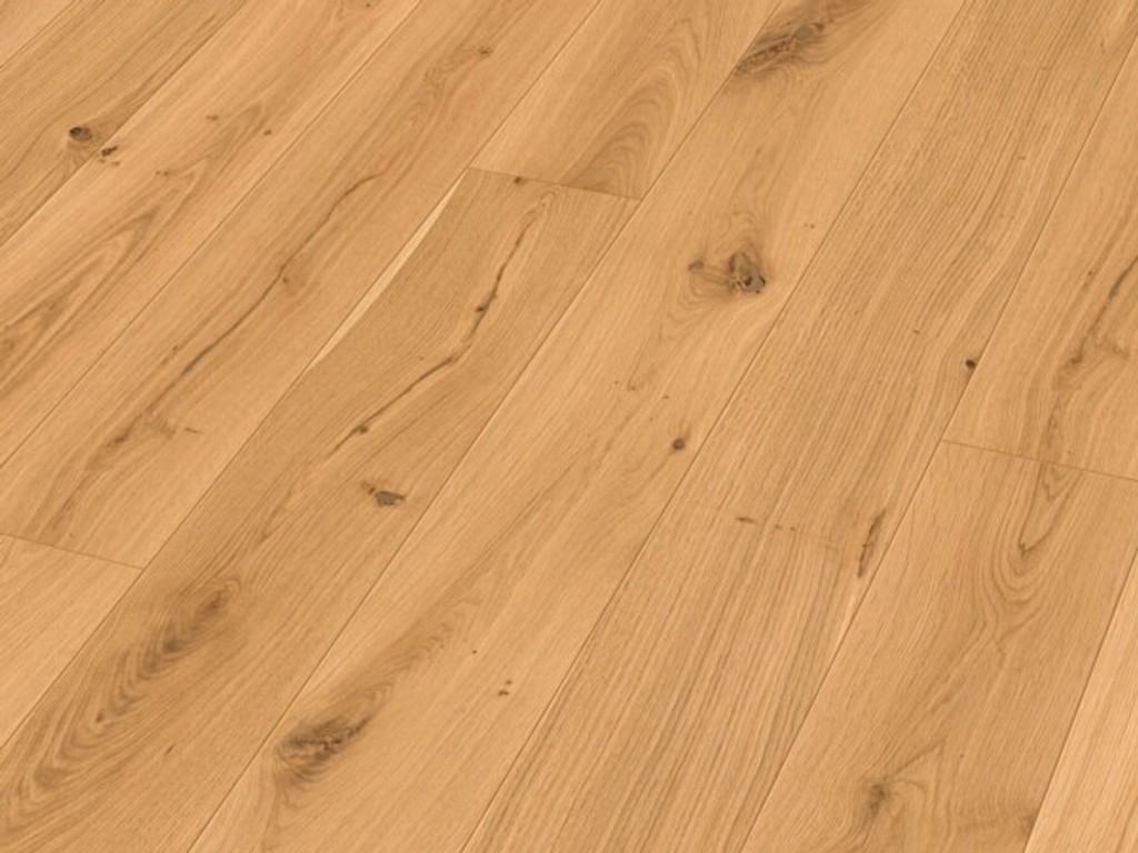 Die Dielen haben eine Breite von 18 cm, eine Länge von 220 cm und sind 13 mm stark. Die Klickverbindung "Masterclic Plus" garantiert eine schnelle und leicht zu handhabende schwimmende Verlegung. Die pflegeleichte 2,5 mm Nutzschicht besteht aus hochwertigem Edelholz und macht den Boden besonders robust. Über einer Warmwasserfußbodenheizung kann dieser Boden problemlos verlegt werden.MEISTER – Räume voller Leben
