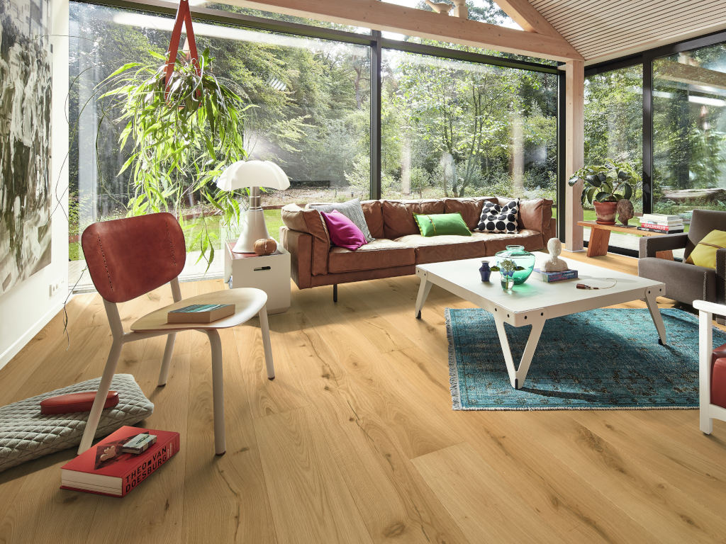 Das Holz der Eiche verleiht diesem Boden einen urwüchsigen Charakter und schenkt allen Räumen stilvolle Wärme und Behaglichkeit. Neben seiner luxuriösen Optik ist Eichenholz relativ hart, aber dennoch trittelastisch. Landhausdielen wirken mit ihrer 1-Stab-Optik elegant, rustikal und voller Charakter. Ein Must-have für Holz-Fans! Dielen mit gefaster Längskante vergrößern die optische Tiefe eines Raumes und verändern so die Raumatmosphäre hin zur Weite.Das Parkett ist "authentic" gemasert: In dieser Sortierung bieten wir bewusst Oberflächen mit starkem Farb- und Strukturspiel, die den natürlichen Charakter des Holzes betonen. Größere Äste, Risse und Splintanteile gehören zum rustikalen Gesamtbild. Astausbrüche und Risse werden fachmännisch ausgespachtelt. Kleine nicht spachtelfähige Risse und Äste können vorkommen.