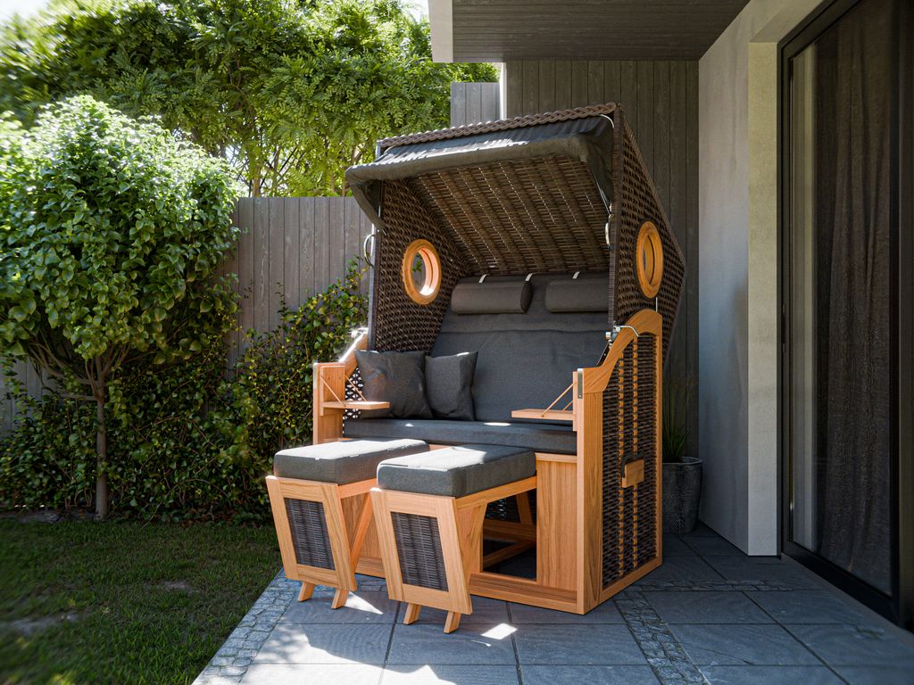 B x T x H: 140 x 80 x 160 cm, Pinienholz, mit Holz-Bullaugen, Kissenausstattung inkl. 2 Knuffelkissen, mit 2 Klaptischen