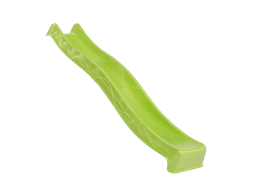 Eine 2,28 Meter lange, grüne Wellenrutsche für die Montage am Podest ist im Sparset bereits enthalten. Die Rutsche lässt sich mit wenigen Handgriffen in eine Wasserrutsche verwandeln. Hierfür befindet sich an der Unterseite der Rutsche ein Anschluss für den Gartenschlauch, der einmalig mit einem Bohrloch hergestellt werden kann. - Inkl. Schaukelsitze + Podest