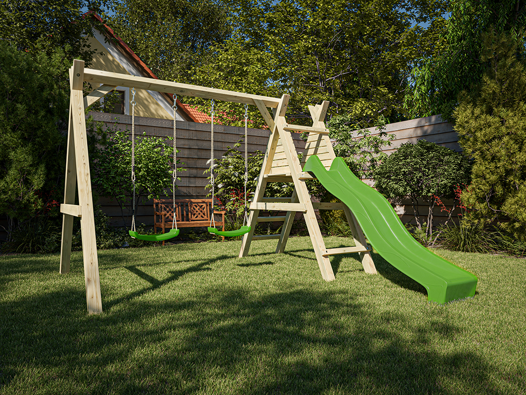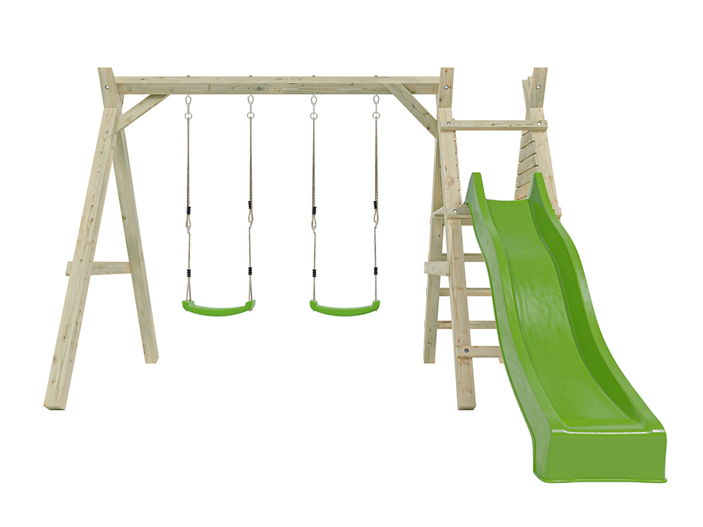 | Lieferumfang: | Doppelschaukel, 2 Schaukelsitze grün, detaillierte Montageanleitung, Rutsche grün |
