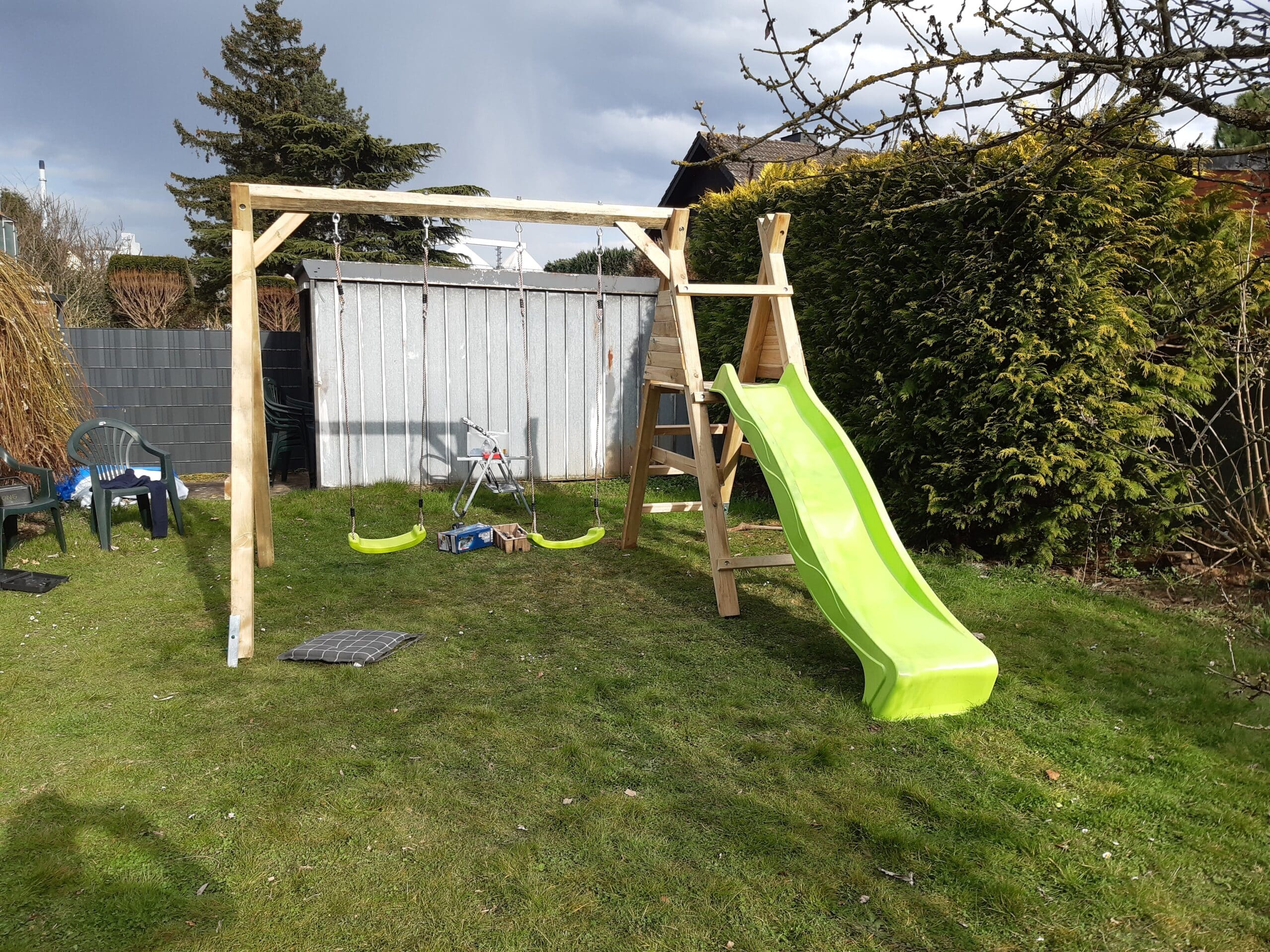 Die Doppelschaukel incl. Rutsche wurde Termingerecht von einer Spetition abgeliefert.