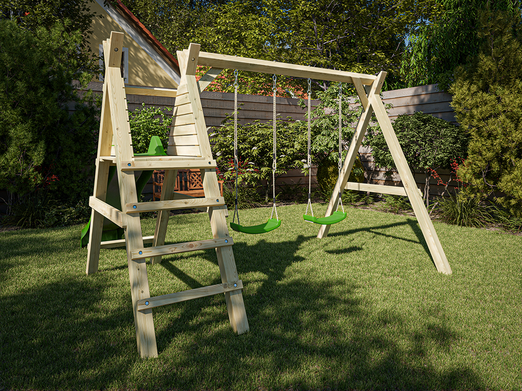 Weiterhin sind in diesem Sparset bereits zwei grüne Schaukelsitze enthalten. - Schnelle Montage