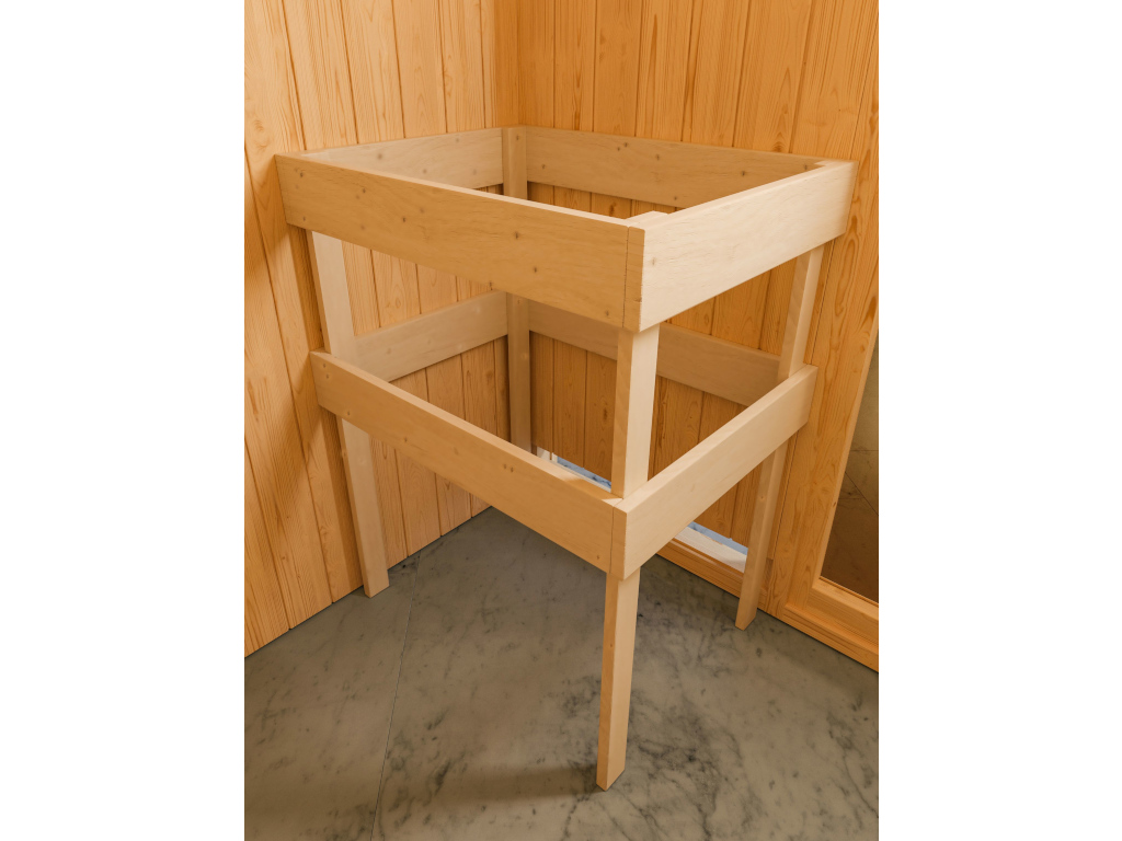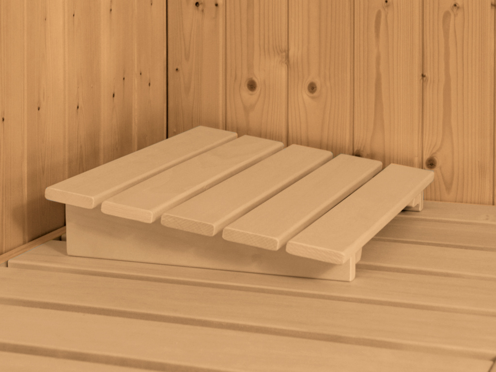 - Bodenrost aus fußwarmem Fichtenholz: für angenehmes Auftreten innerhalb und außerhalb der Sauna.