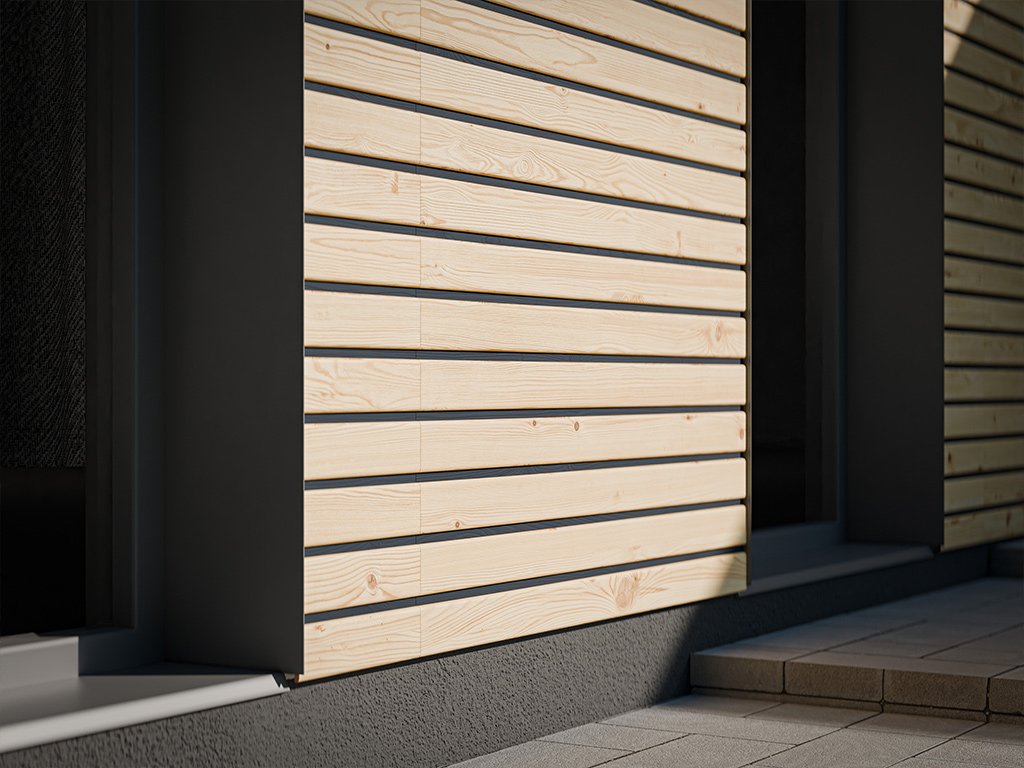 Fassade Rhombusleiste kanadische Lärche mit schwarzer Feder