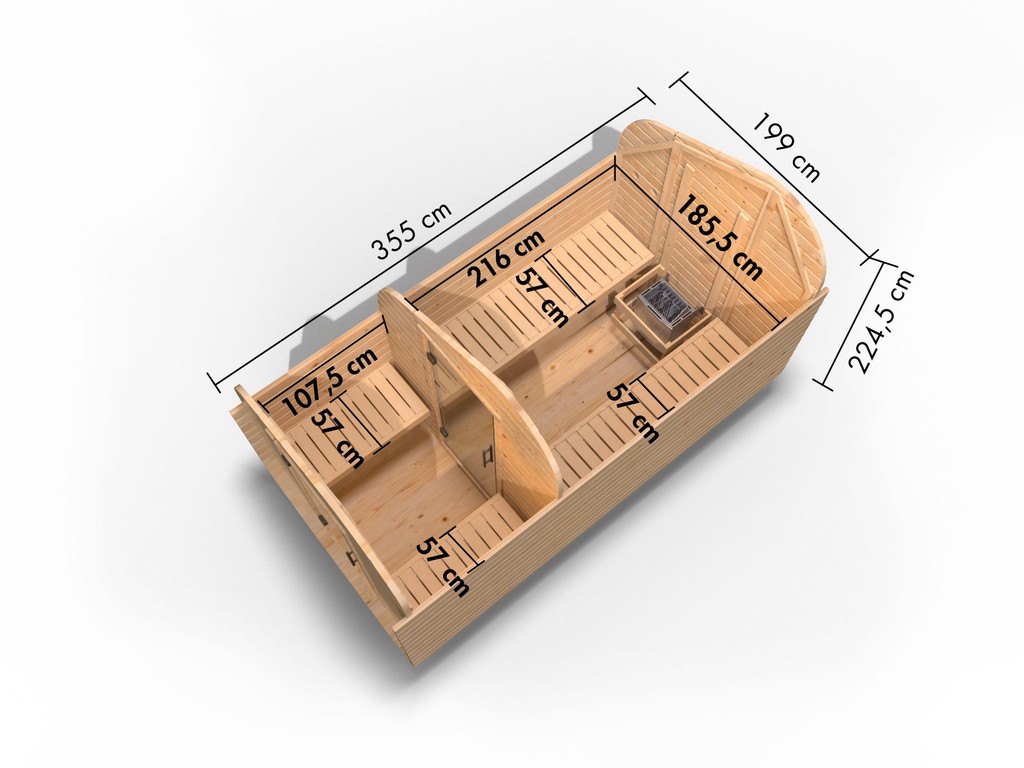 Lieferumfang: | 4 Liegen inkl. 9 kW Ofen + ext. Steuerung |