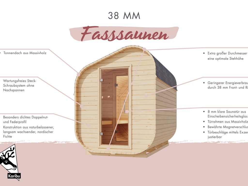 KARIBU Fasssauna Asymmetrisch 3 SET naturbelassen