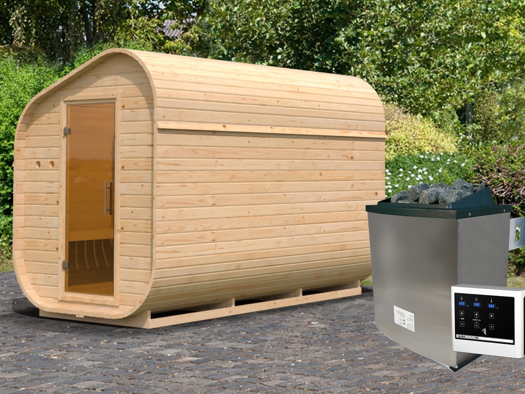 Bei dieser Sauna ist ein Saunaofen mit einer externen Steuerung inklusive. Das Steuergerät wird außerhalb der Sauna angebracht. Auf diese Weise fängt schon vor dem Saunieren der Komfort an – mit einer bequemen Bedienung von außen und einer noch exakteren Temperatureinstellung. Weitere elektrische Geräte wie die Kabinenbeleuchtung können ebenso an die externe Steuerung angeschlossen und bedient werden.