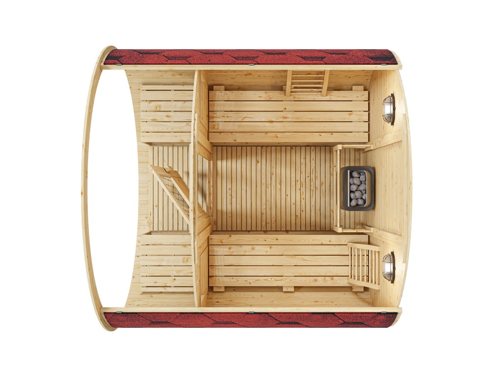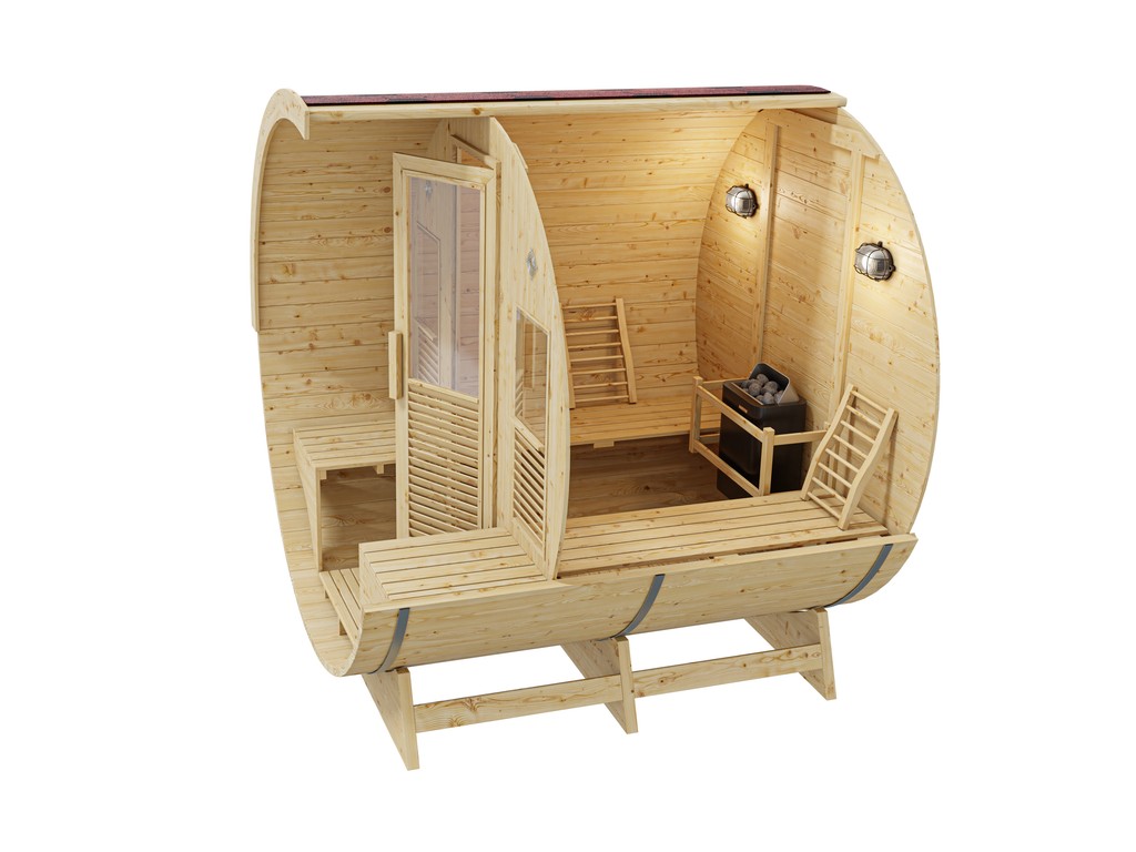 | Lieferumfang: | inkl. 20kg Saunasteine, Sanduhr, Doppelthermometer, Aufgusskübel, Schöpfkelle, Lampe und Rücklehne |
