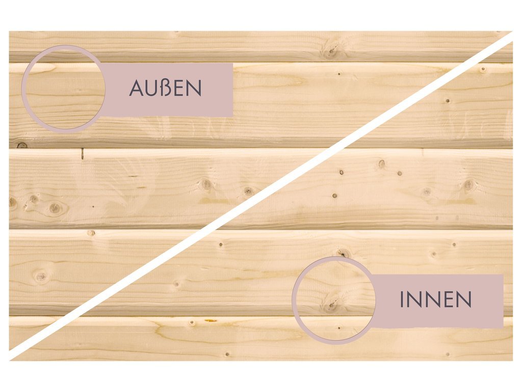 Die hochwertig gearbeitete Sauna zeichnet sich durch ihr ausgesuchtes erstklassiges Fichtenholz aus. Fichte ist besonders langlebig und robust, was für die notwendige Stabilität sorgt. Außerdem überzeugt die Holzart mit geringem Gewicht, einer leichten Verarbeitung und hoher Elastizität. Das naturbelassene Holz sorgt für ein natürliches und zeitloses Aussehen. Außerdem ermöglicht dir das unbehandelte Holz, das Äußere der Gartensauna ganz nach deinen eigenen Wünschen zu gestalten.