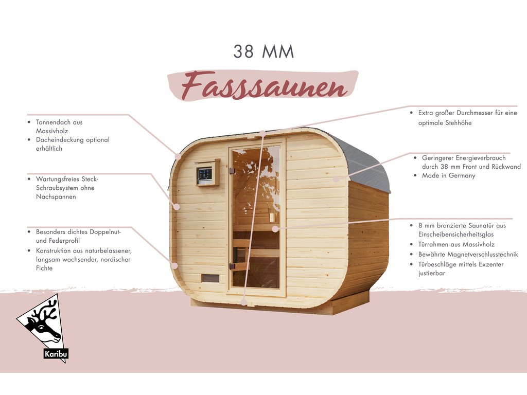 KARIBU Fasssauna Quadro 1 Plus 38 mm naturbelassen