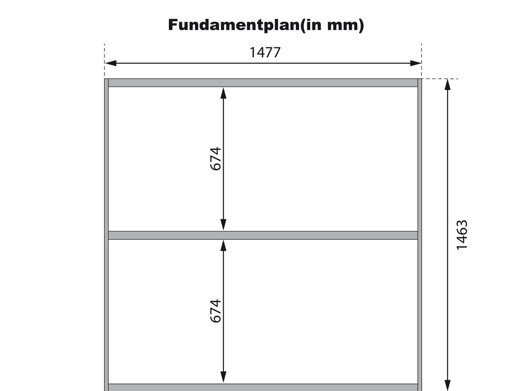 Orientiere dich für die Erstellung des Fundaments am Grundriss bzw. an der mitgelieferten Montageanleitung! Produktblätter, Montageanleitungen und weitere wichtige Hinweise findest du unter der Produkttabelle.