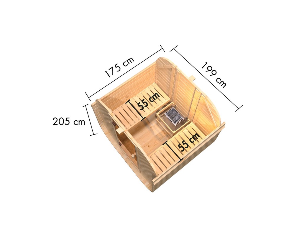 B x T x H: 199 x 175 x 205 cm, inkl. 9 kW Ofen + integr. Steuerung
