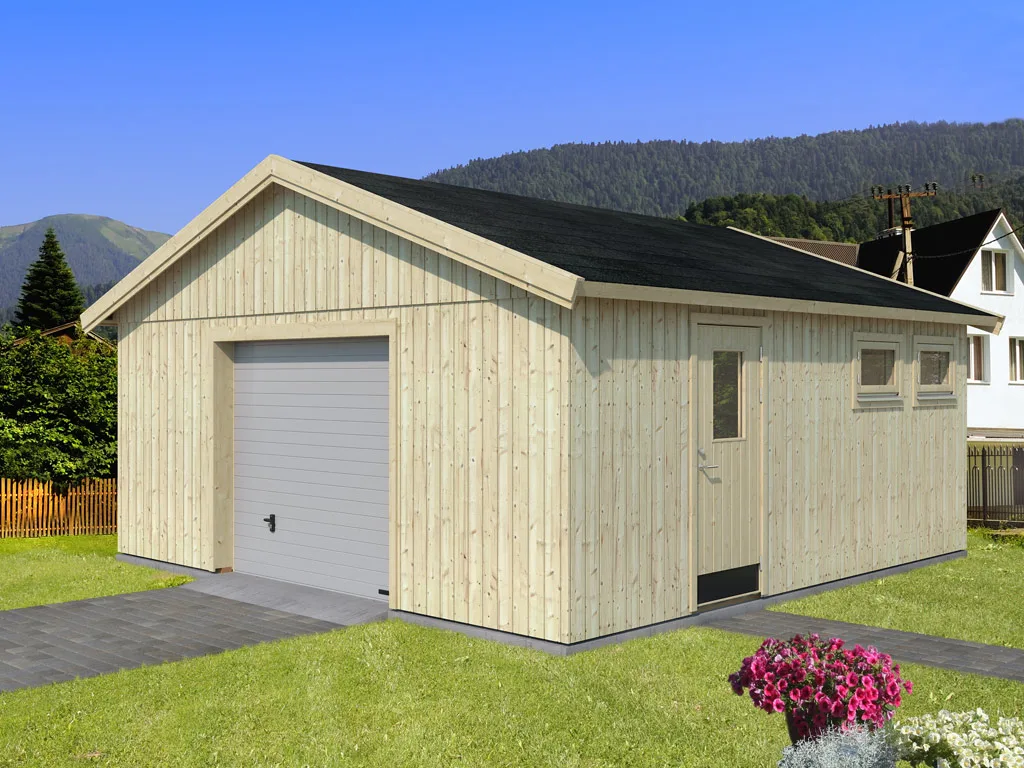 Garage Andre 28,5 m² mit Sektionaltor 18+95 mm naturbelassen