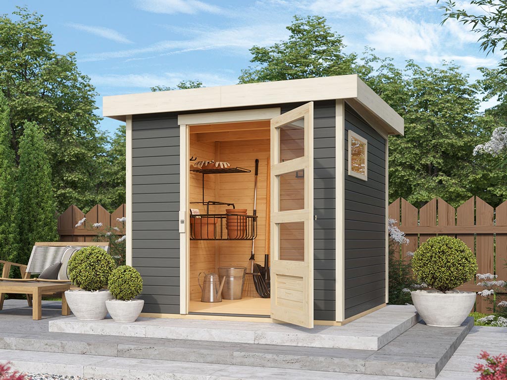 Mit diesem modernen Gartenhaus liegst Du voll im Trend. Dieses Gartenhaus überzeugt mit seinem modernen Design, das für einen echten Hingucker im Garten sorgt. Praktisch und kompakt passt es in jeden modernen Garten.