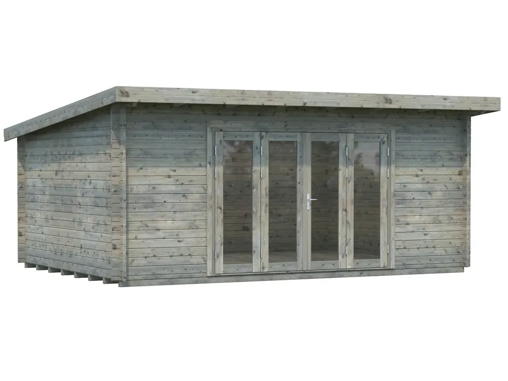 Die Wandstärke von 44 mm sorgt für gute Stabilität und Langlebigkeit. Dank der Bohlenstärke ist das Gartenhaus im Winter frostsicher, und im Sommer hat es gute wärmeisolierende Eigenschaften, was es zu einem perfekten Übernachtungsort für Gäste macht. Auch Pflanzen können in diesem Gartenhaus problemlos überwintern.