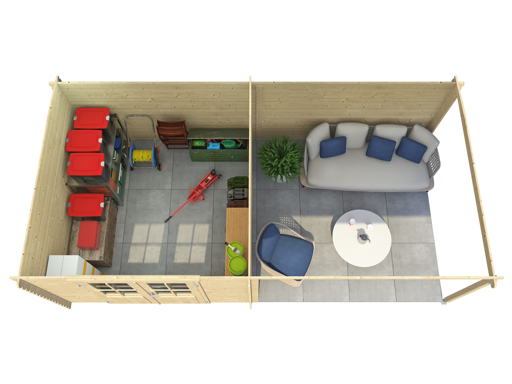 • Das Gartenhaus wird ohne Fußboden geliefert. Einen passenden Fußboden (achte auf die Serienbezeichnung) findest Du in unserem Zubehör-Sortiment.
