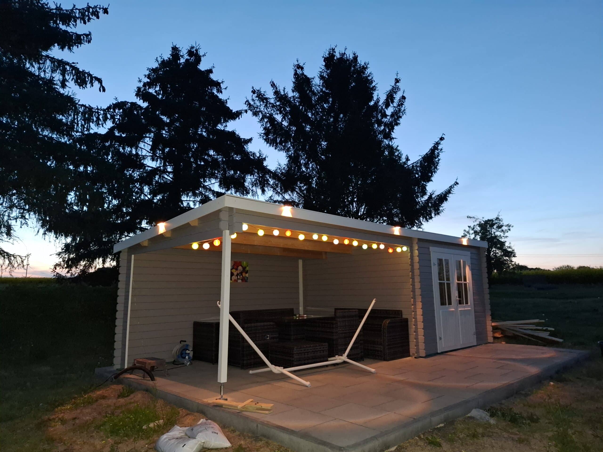 Lasita Gartenhaus 3 x 3 + 4 m Blockbohlenbauweise Flachdach