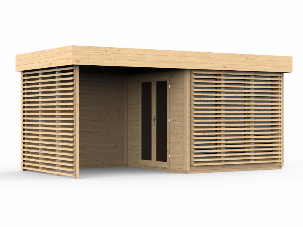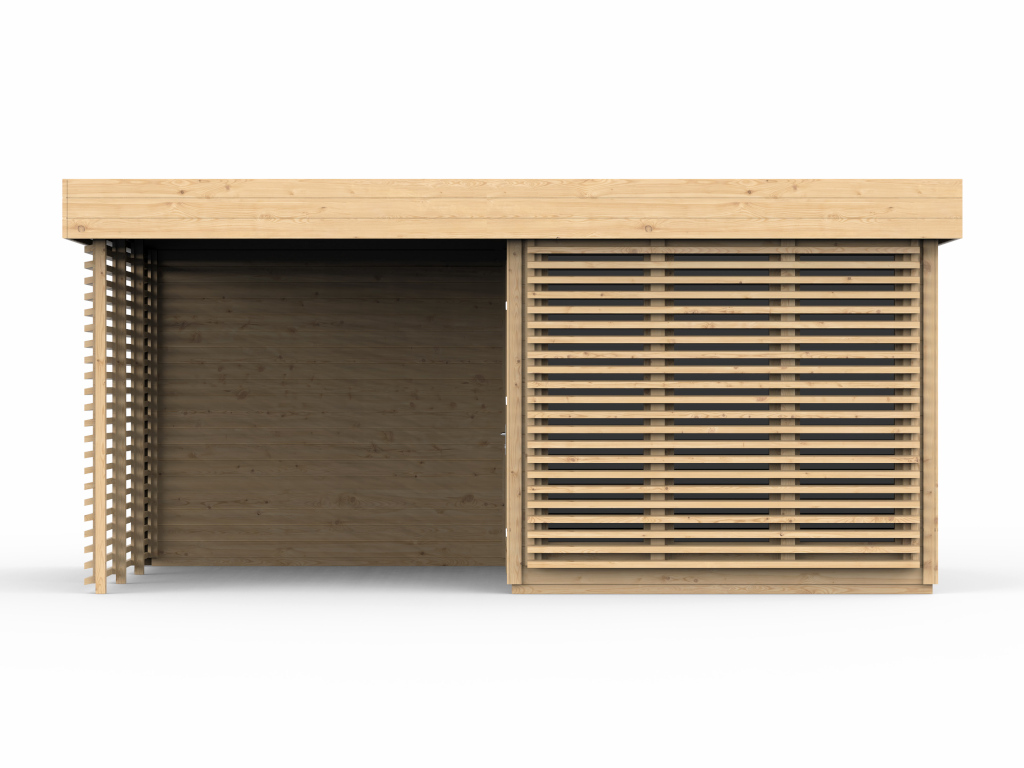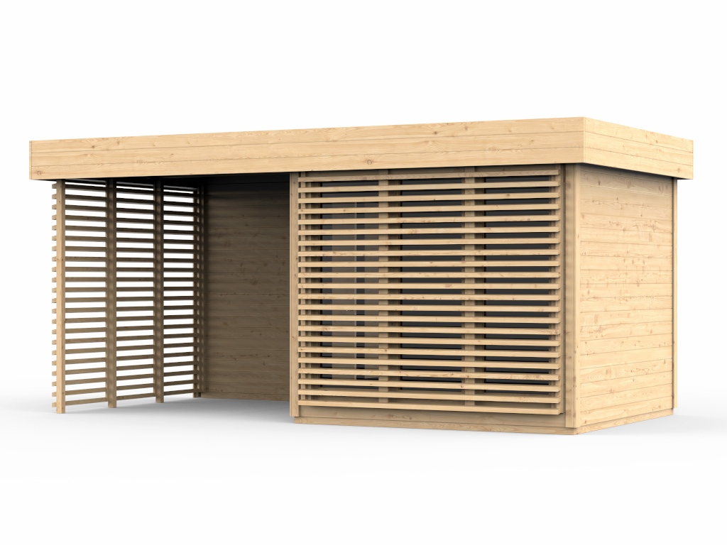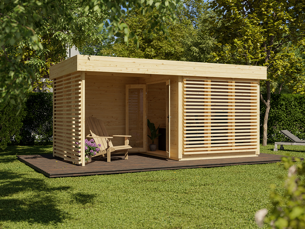 Gartenhaus Homeoffice Ivar 28 mm naturbelassen mit 264 cm Anbau